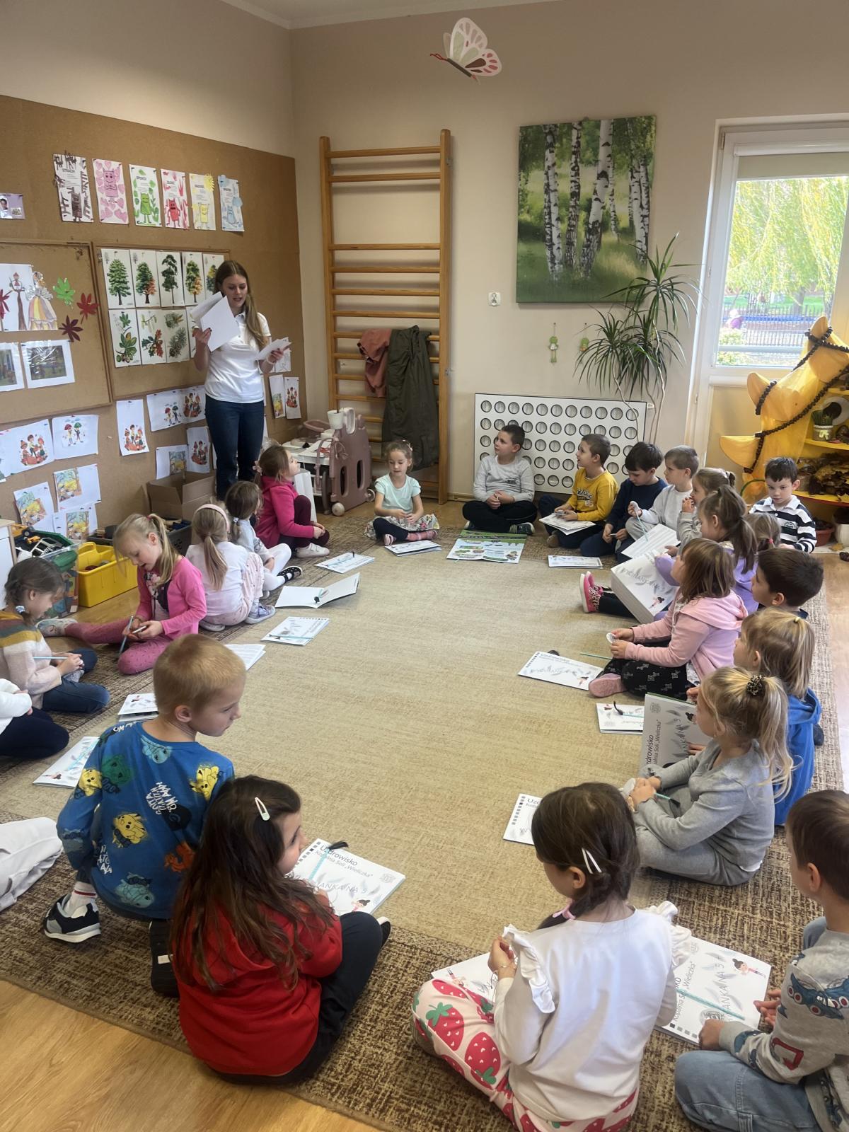 27 pażdziernika nasze przedszkole odwiedziła Pani fizjoterapeutka z Uzdrowiska w "Kopalni Soli" w Wieliczce. Zdrowie na 5+ to program edukacji zdrowotnej skierowany do przedszkolaków z terenu powiatu wielickiego. Ma formę interaktywnego spotkania z fizjoterapeutą, który ćwiczenia i prelekcje przeprowadza w placówkach przedszkolnych, które zgłosiły chęć udziału w danej edycji.