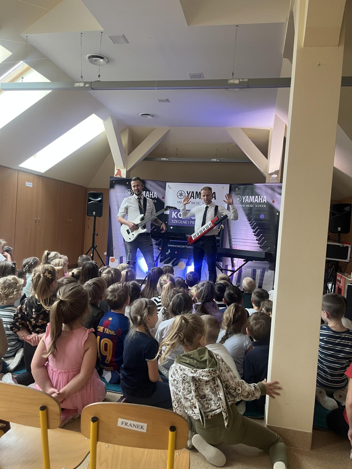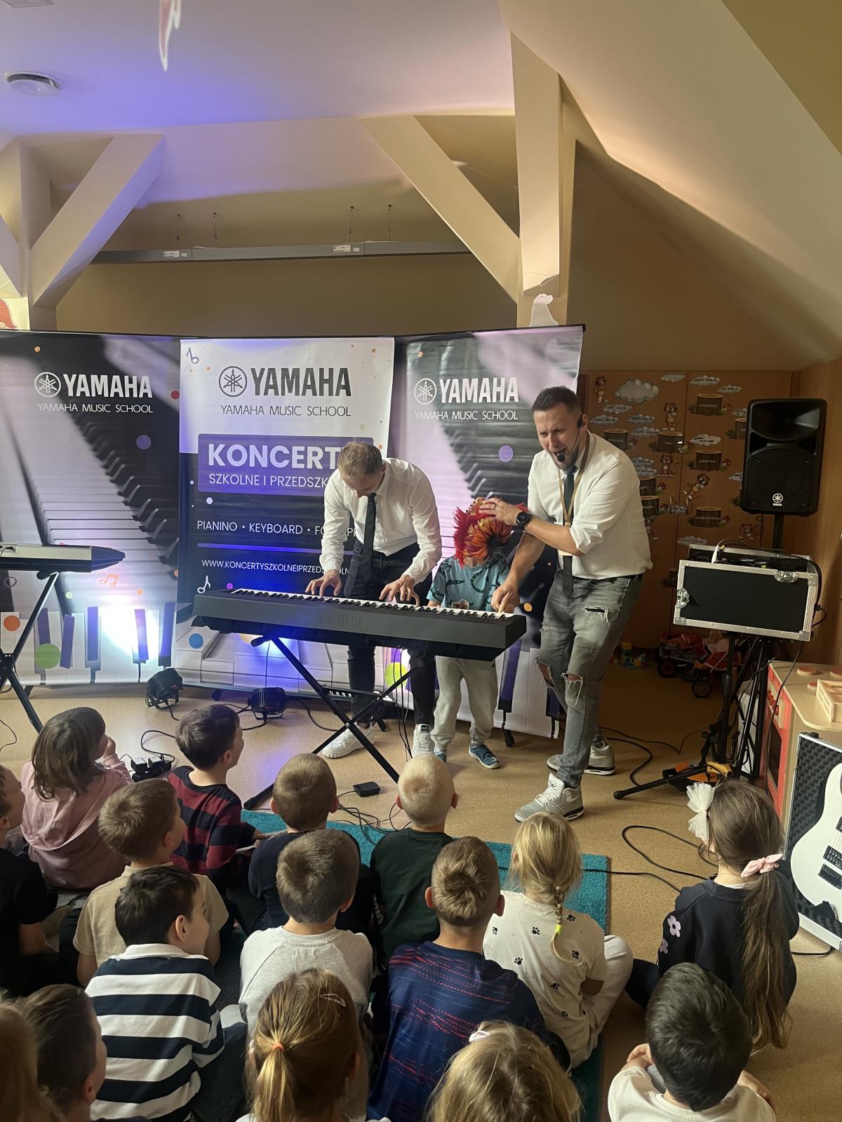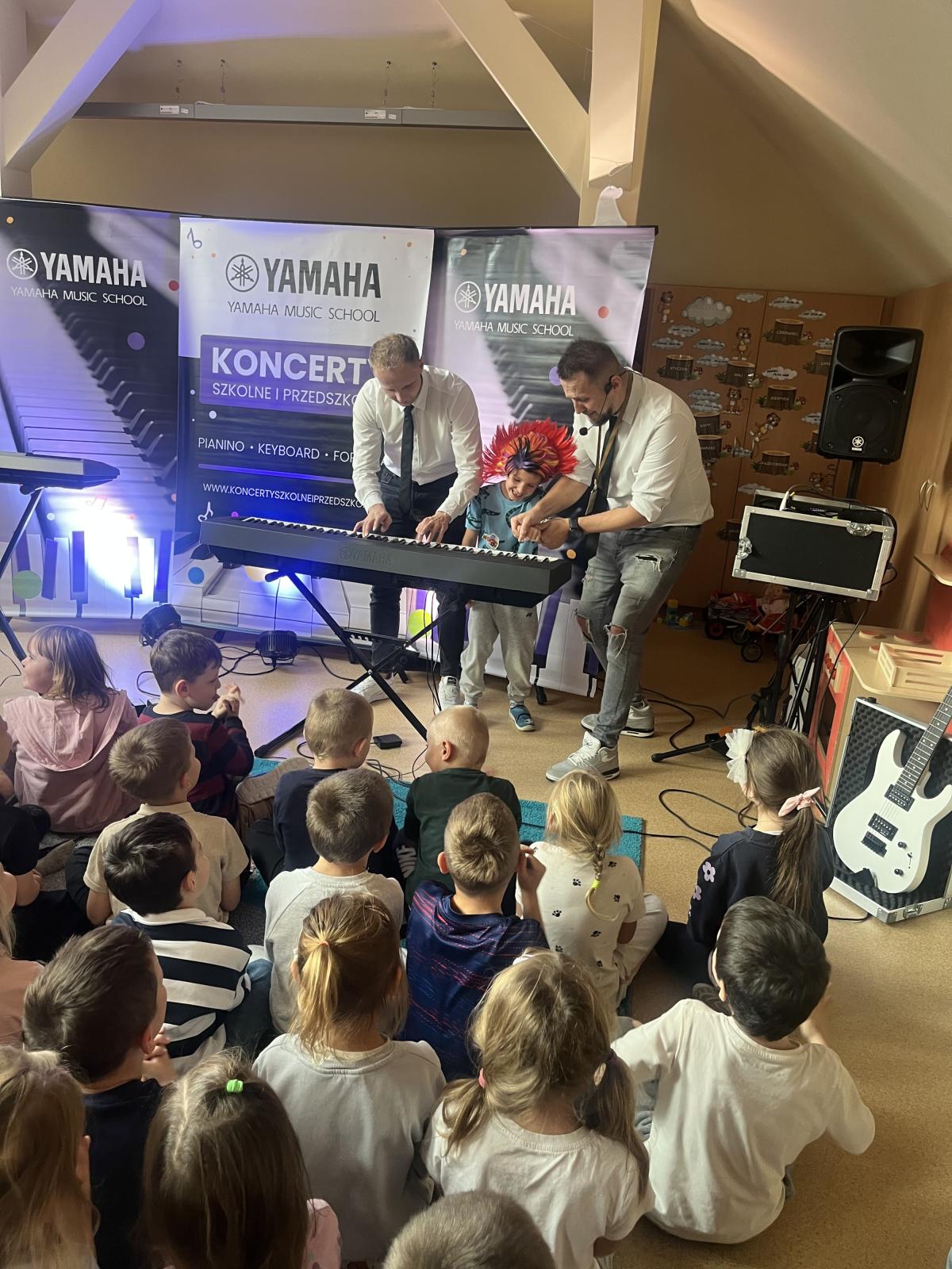 Dnia 27 pażdziernika nasze przedszkole odwiedził zespół muzyczny "Yamaha music school". Nasze przedszkolaki zapoznały się bliżej z instrumentami klawiszowymi takimi jak pianino cyfrowe lub keyboard. Dzieci miały możliwość zagrać na instrumentach klawiszowych. Wspaniała zabawa, tańce i ciekawe aranżacje towarzyszyły nam podczas konceru.