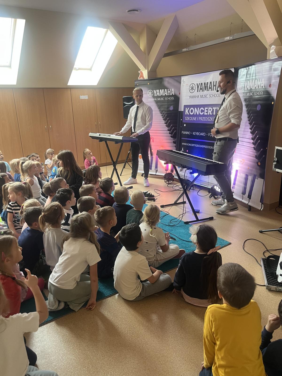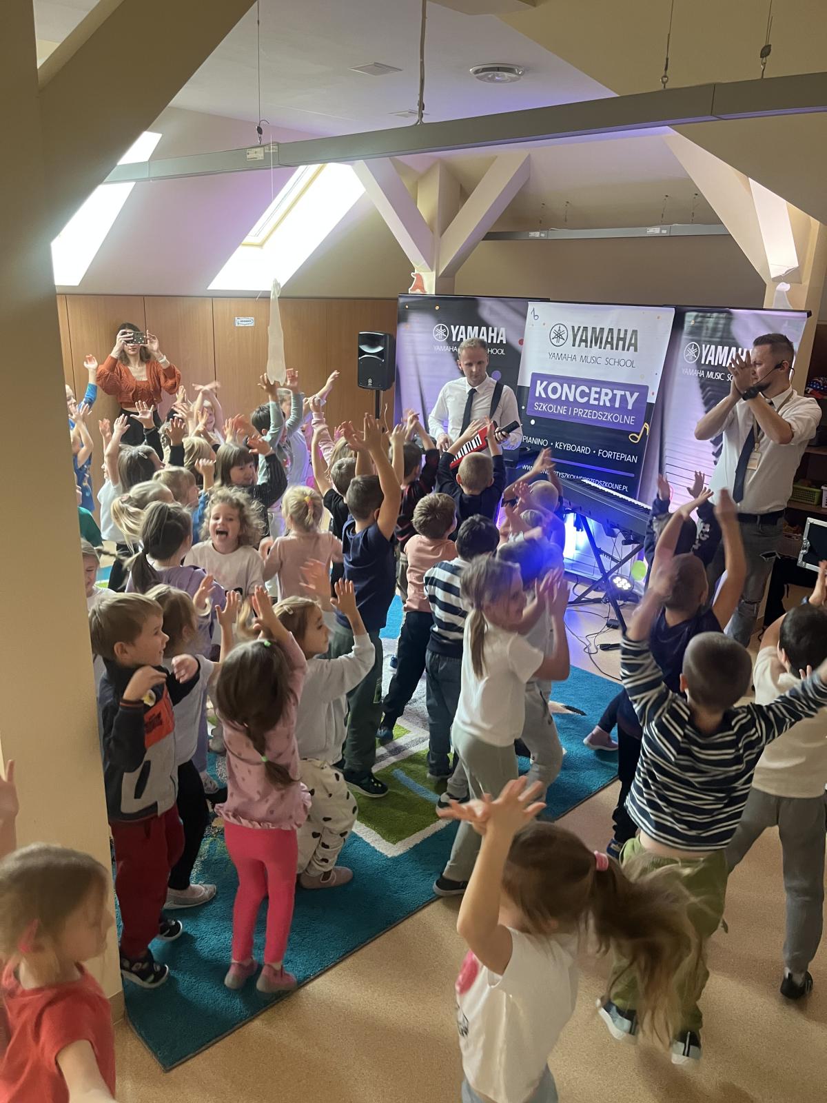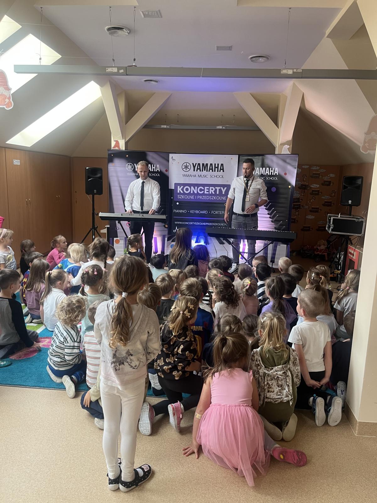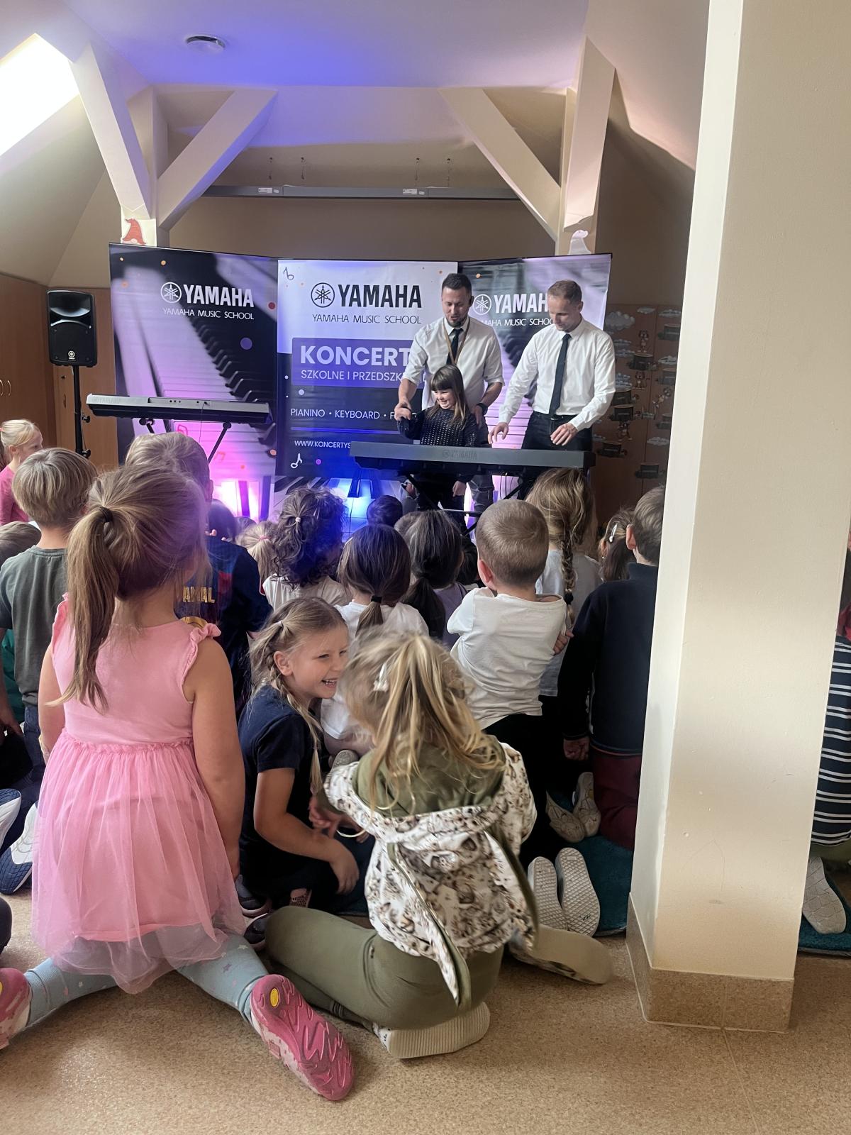 Dnia 27 pażdziernika nasze przedszkole odwiedził zespół muzyczny "Yamaha music school". Nasze przedszkolaki zapoznały się bliżej z instrumentami klawiszowymi takimi jak pianino cyfrowe lub keyboard. Dzieci miały możliwość zagrać na instrumentach klawiszowych. Wspaniała zabawa, tańce i ciekawe aranżacje towarzyszyły nam podczas konceru.